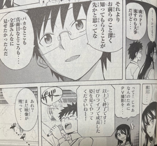 文化祭でアイドル部の活動を知ってもらうためのPV映像を上映。編集ミスで動画の最後に、アイドル部合宿で盗撮した鬼咲の入浴シーンが流れてしまう。(3巻)