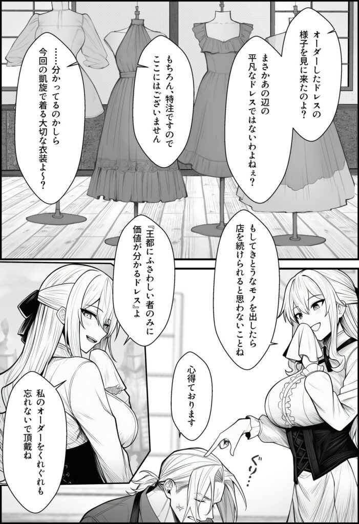 横暴な王女に無茶なドレス制作を強いられる装備屋の主人公。