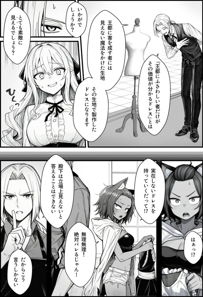 二人は『王女を民衆の前で晒し者にする計画』を企てる。披露の場で明かされたのは──『王都にふさわしい者にしか見えないドレス』だった
